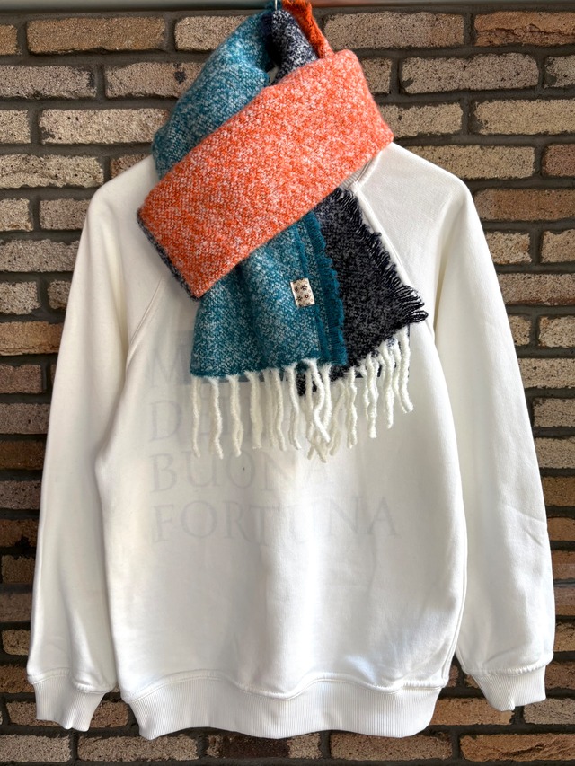 FORNARI(フォルナリ)ユニセックスマフラー WADITI 4 ネイビーxオレンジxブルー