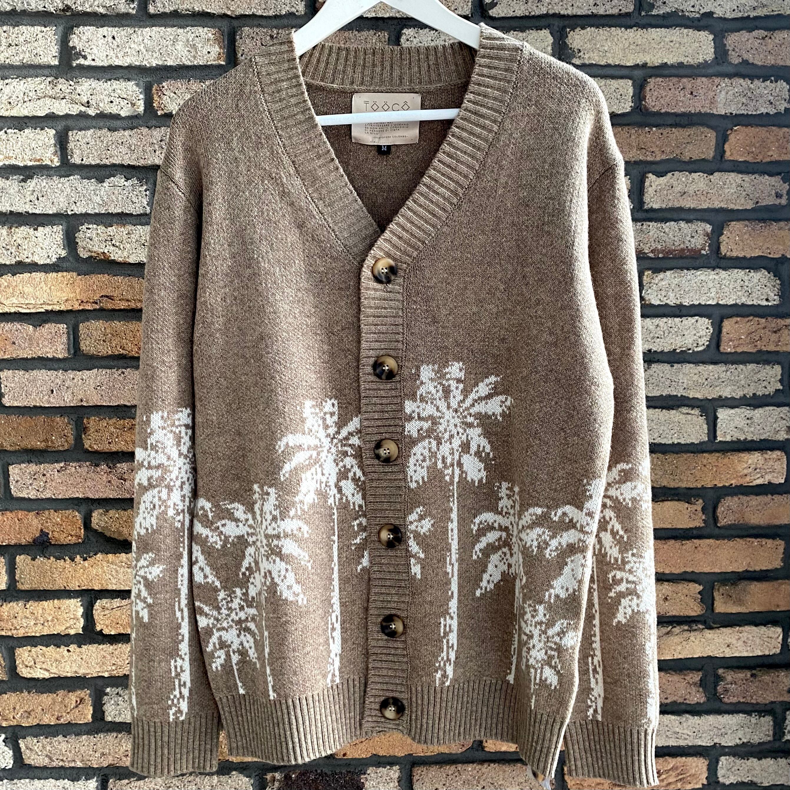 新作カーディガンはトーコらしいヤシの木を編み込んだ自信作になっております。